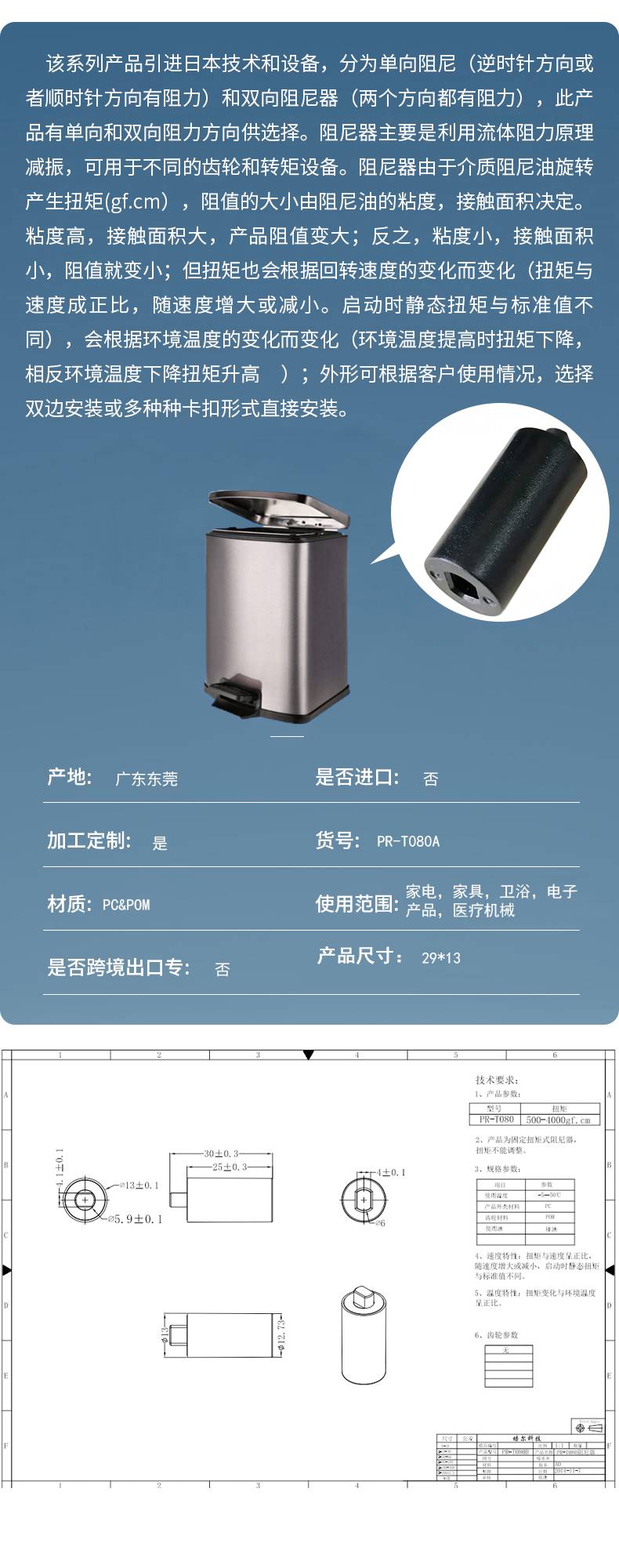 公司业务:主要专业从事阻尼器、缓冲器、门锁等研发、生产、销售的专业厂家。占地面积:现占地5600多平方米,拥有一批高素质的管理和技术专才。生产设备:引进日本生产检测设备,检测设备完善,拥有专业的研发设计,注塑装配团队。产品性能:可按客户要求定制各式产品,本公司生产的阻尼器性能稳定,品质卓越,在-40......