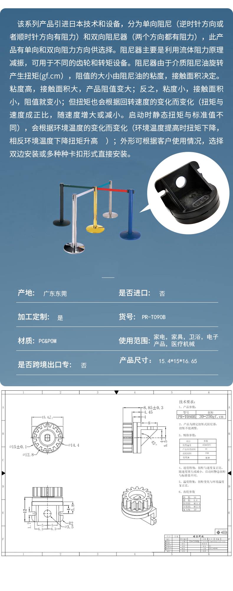 公司业务:主要专业从事阻尼器、缓冲器、门锁等研发、生产、销售的专业厂家。占地面积:现占地5600多平方米,拥有一批高素质的管理和技术专才。生产设备:引进日本生产检测设备,检测设备完善,拥有专业的研发设计,注塑装配团队。产品性能:可按客户要求定制各式产品,本公司生产的阻尼器性能稳定,品质卓越,在-40......