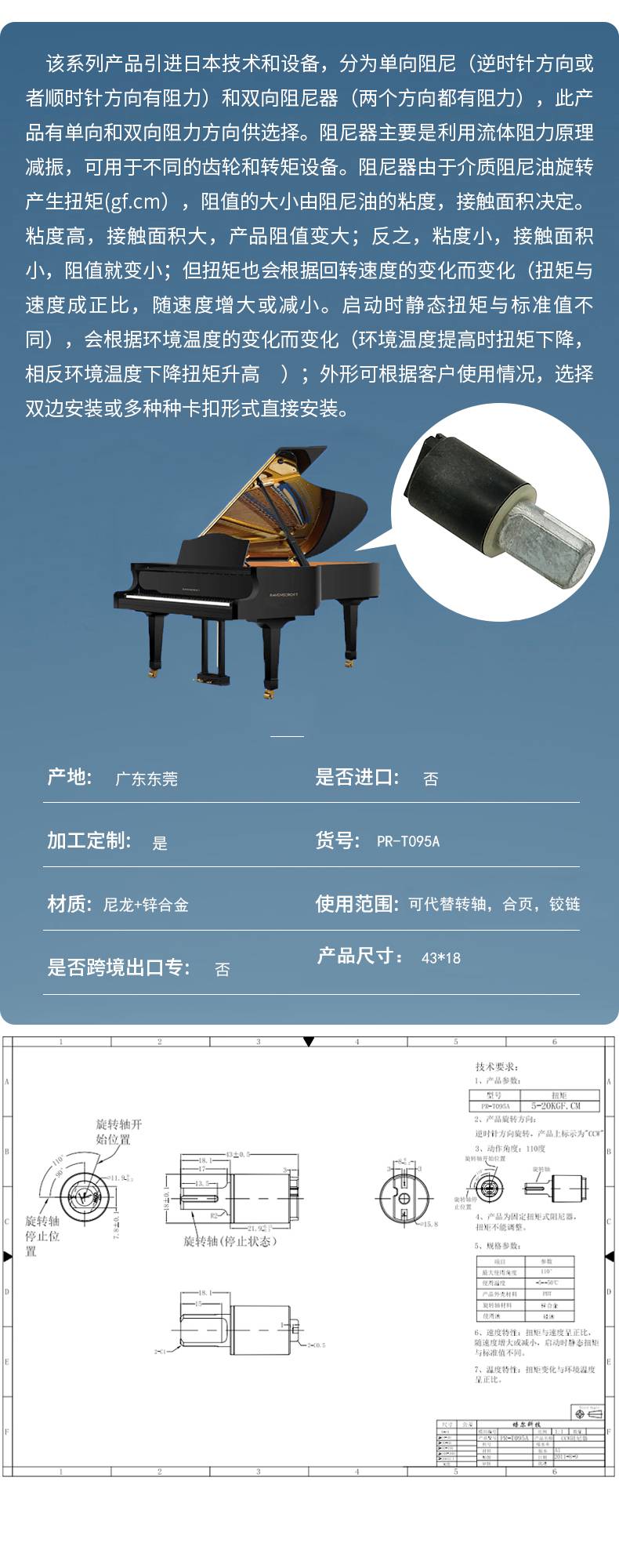 公司业务:主要专业从事阻尼器、缓冲器、门锁等研发、生产、销售的专业厂家。占地面积:现占地5600多平方米,拥有一批高素质的管理和技术专才。生产设备:引进日本生产检测设备,检测设备完善,拥有专业的研发设计,注塑装配团队。产品性能:可按客户要求定制各式产品,本公司生产的阻尼器性能稳定,品质卓越,在-40......