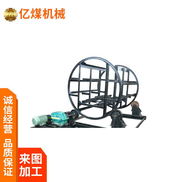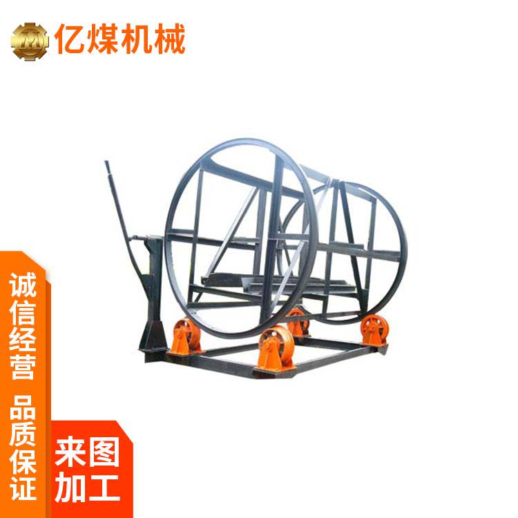 手动翻车机由滚圈、轨道拉杆、加强角钢、底盘、轮子等给成,矿车进入翻车机内,滚圈在轮子上灵活翻转。手动翻车机按轻车出车方式可分为:直通式和后退式两种。结构主要由端盘、托梁、拉杆、立柱、挡车梁、托轮、拉筋几部分组成。