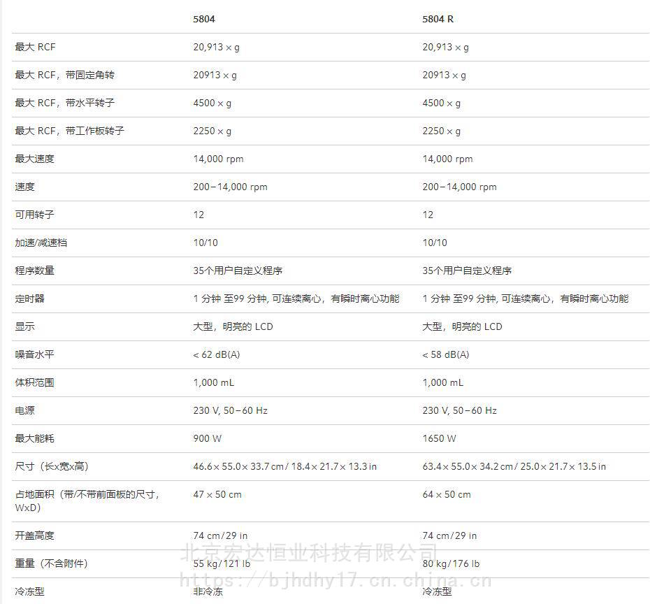 5804 R 冷冻离心机的其他产品特性