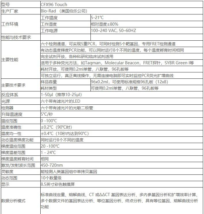 伯乐CFX96Touch实时荧光定量PCR仪技术参数: