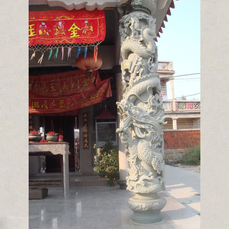 青石龙柱是我们为常见的一种龙柱,这种龙柱古朴高雅,给人一种安静,深邃的宁静感和沧桑感,历史给于我们的很多都是这样感觉,一般石雕龙柱所采用的石材往往都是珍贵和优质 的墨玉、汉白玉等等石料,其中,现代人以青石为主要主要石料,主要因为青石的色彩浓郁而幽深,静置而安宁,百龙柱:这种龙柱以庞大的柱体为结构基础,在一根圆柱上面雕刻一百条不同形态,不同造型,不同表情的龙,每条龙都有不同的变化
