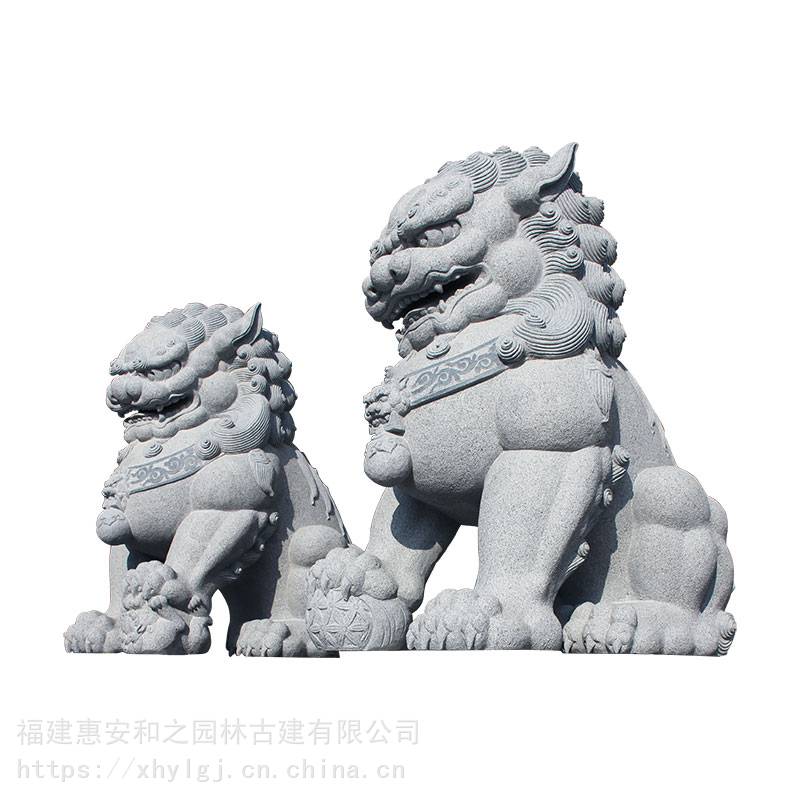 石狮子发展到后来,很多不同的狮子造型开始出现,在中国,***经典的招财狮子造型为钱币狮(也成为金钱狮),它们嘴里不会含石球,反而是叼着一枚钱币,并且身上的铠甲或纹路,或多或少的出现一些铜钱纹路,其实这些都是招财的寓意。,一对石狮子选自优质的福建本地青石雕就而成,雕刻水平相对较难,水平也相对较高。适合摆放在大门外,放在中式古宅。给人一种复古的感觉。,北京狮:这种形态的狮子很经典,是中国府邸,宫殿常用的摆件,狮子威武雄壮,为蹲坐姿态,双目圆瞪,前肢发达,面露凶光,在北京***前用的就是这类狮子,北京狮在北方较为常见。
