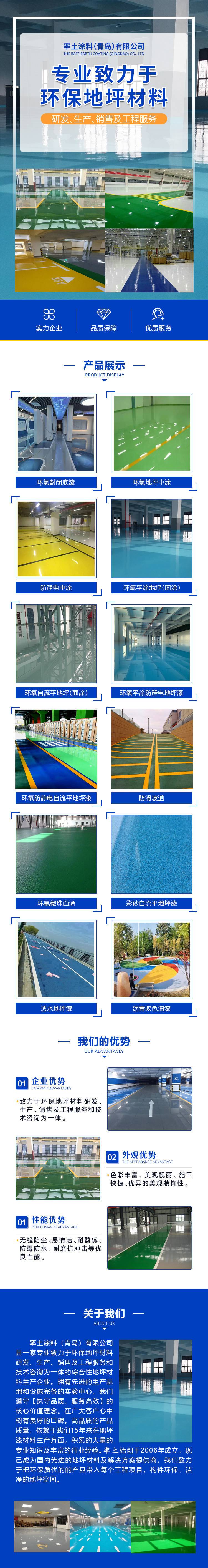 8、其他地坪涂料:如以丙烯痠酯树脂和氯化橡胶等为基料,通常作为水泥或混凝土表面的处理剂,起封闭作用,防止泛碱水汽渗出,以利於涂料涂装和在使用过程中对涂层的防护。主要适应各种水泥,混凝土地面场所。以及***地坪涂料,涂料使用***材料制成,涂膜***。适应於食品厂,制药厂等卫生性能要求高的地面涂装