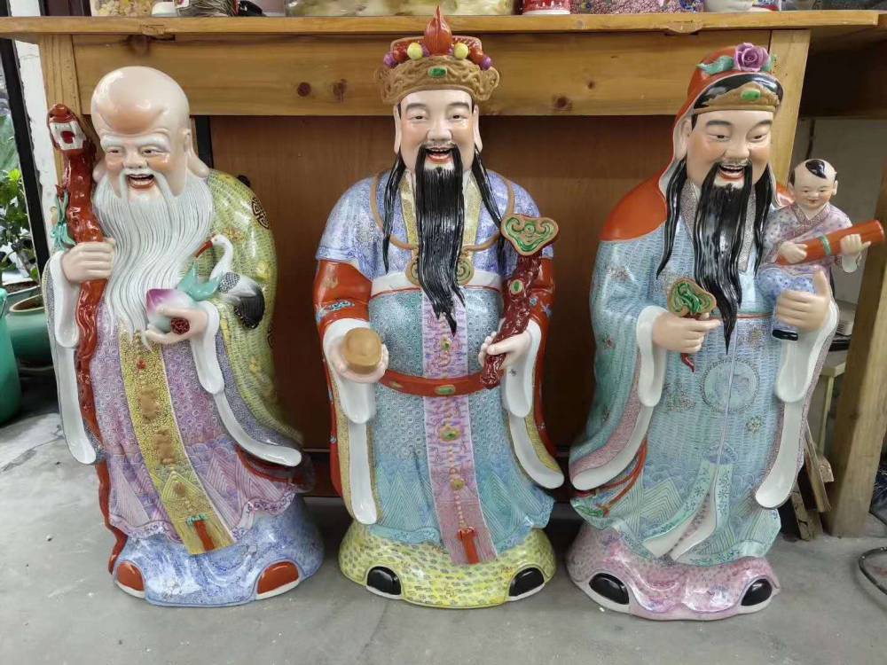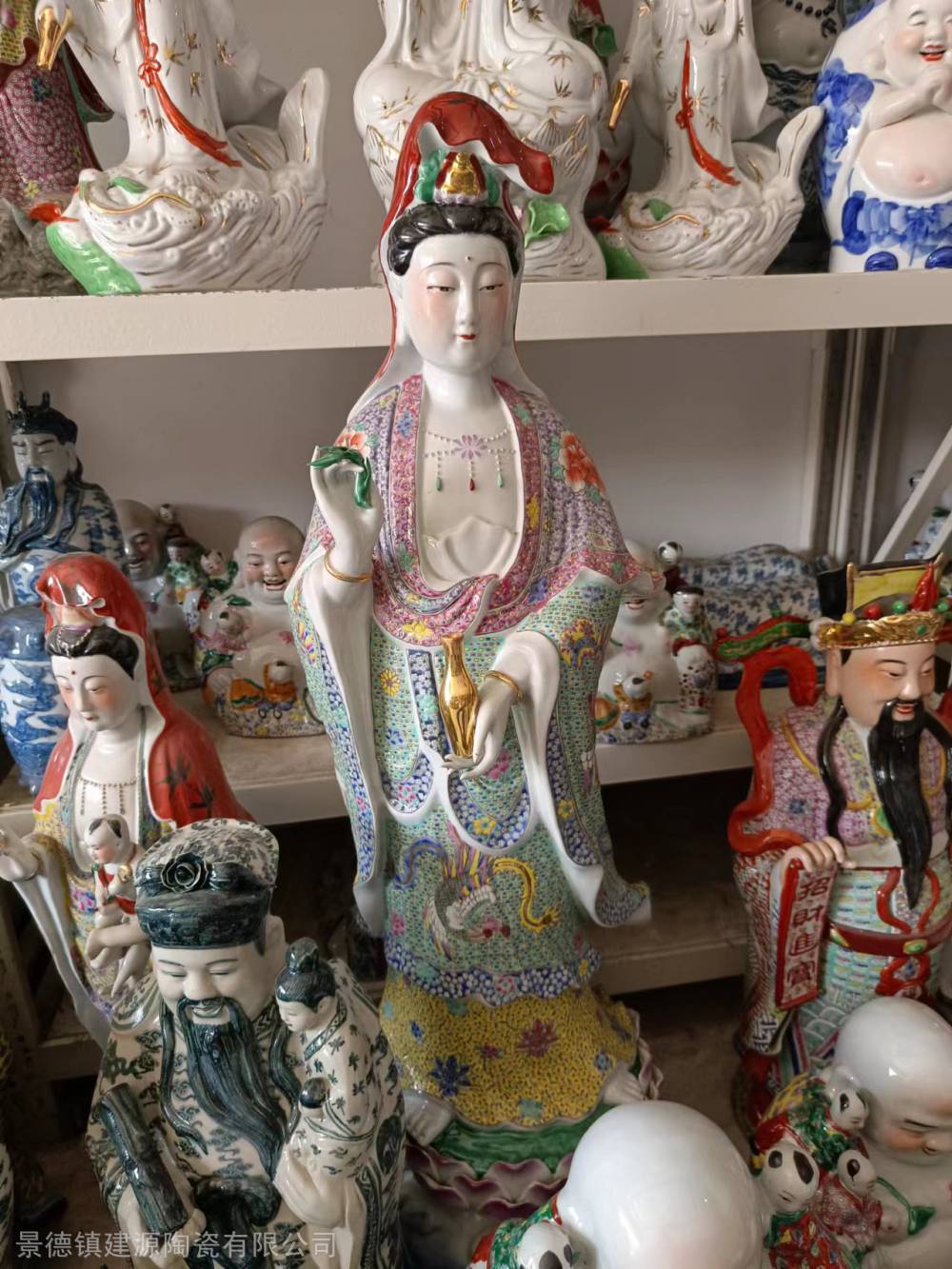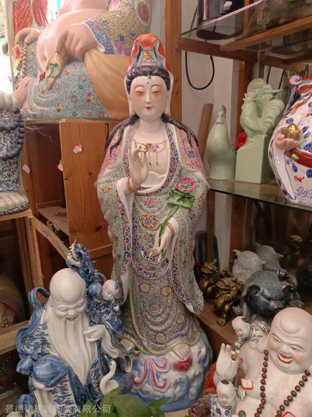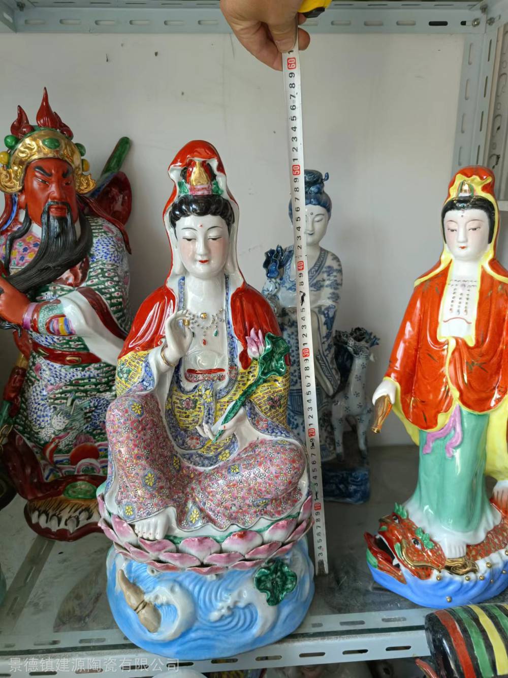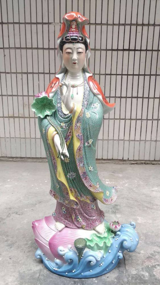 陶瓷财神爷佛像批发 ***观音菩萨图片 重工粉彩陶瓷价格90公分高、1米高,大小。