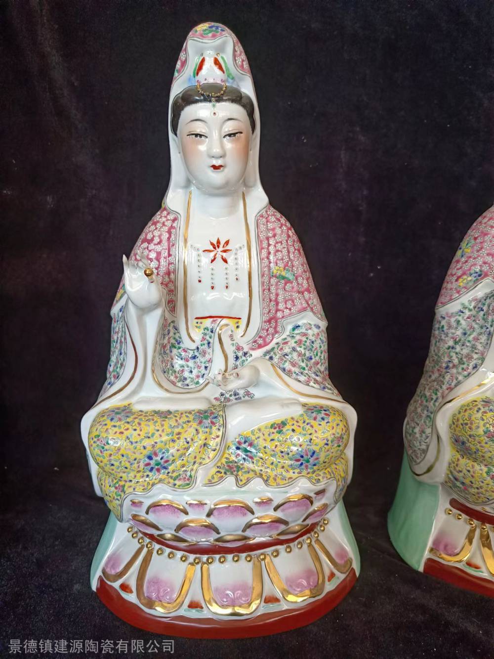 粉彩雕塑观音佛像 景德镇雕塑瓷摆件 莲子观音厂