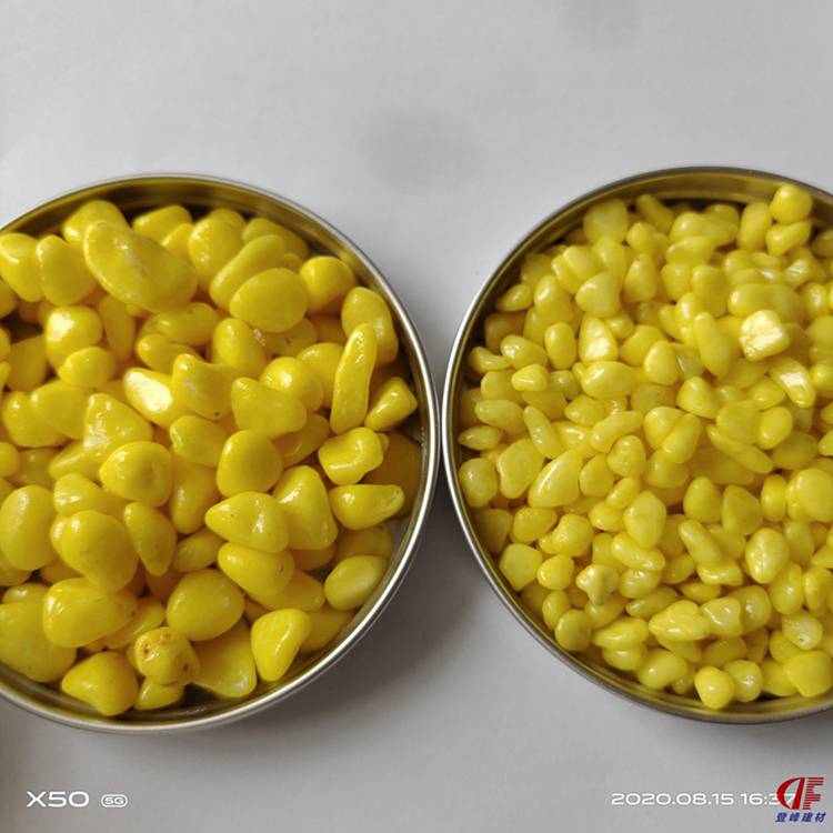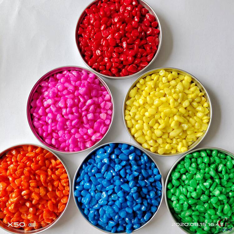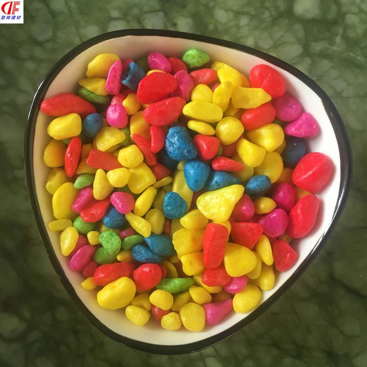 染色鹅卵石是由制鹅卵石经化工上色、高温等多道工序加工而成。她弥补了天然卵石颜色不鲜艳、品种少等缺点。 色彩牢固、环保、不退色。是一种环保绿色的装饰材料。