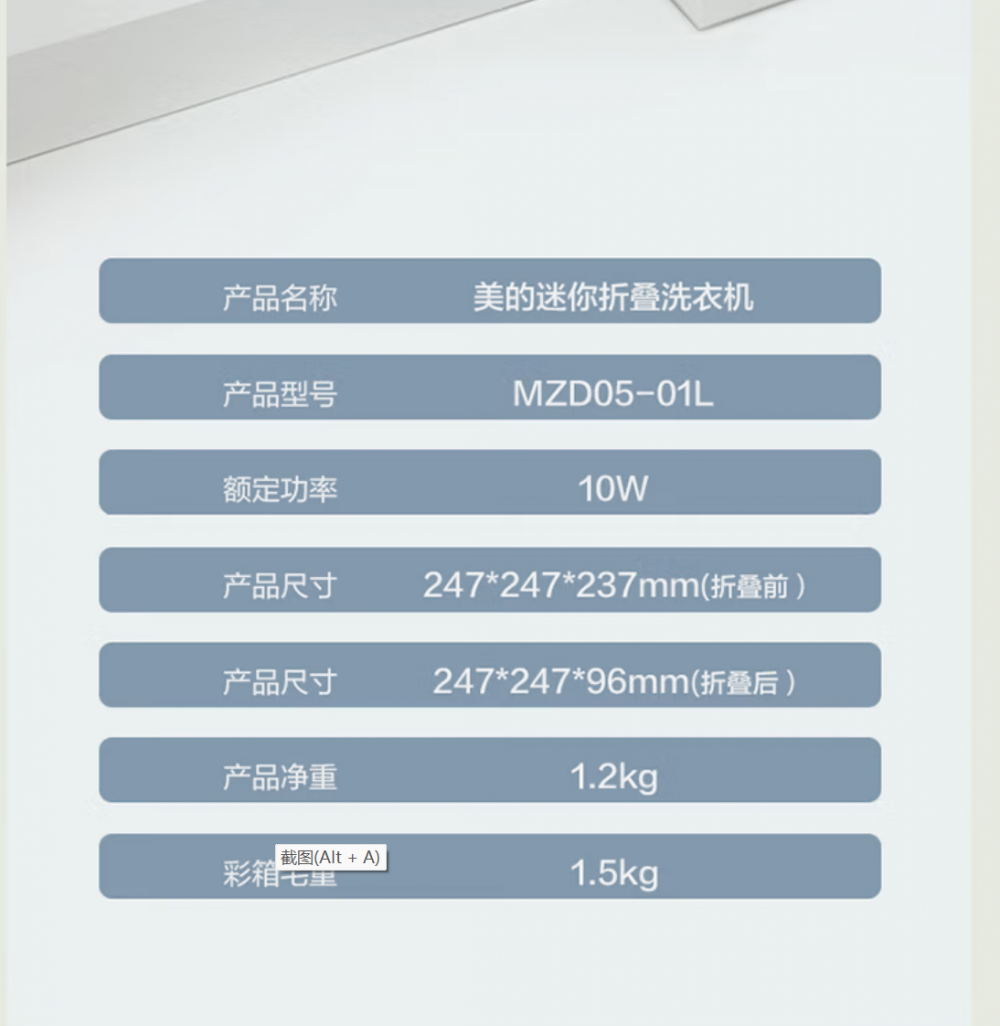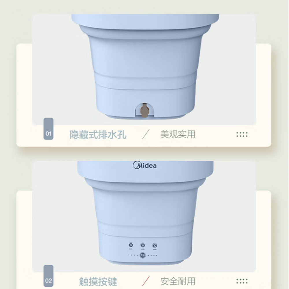 MZD05-01L美的(Midea)迷你折叠便携式小型洗衣机 家用宿舍出差旅行洗袜子***内裤宝宝母婴