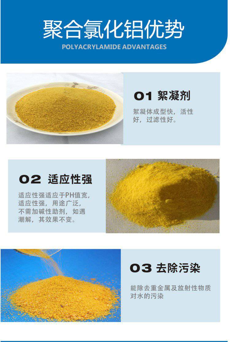 1.絮凝体成型快,活性好,过滤性好。2.无需加碱性助剂。遇潮解效果不变。3.适应PH值宽,适用水域广,用途广泛。4.处理过的水中盐分少。5.能除去***及***性物质对水的污染。