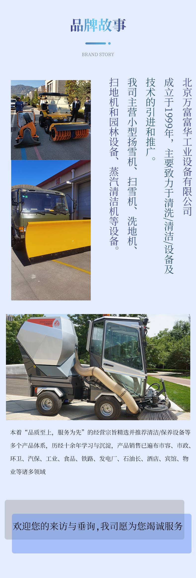 北京万富大众工业设备有限公司,成立于1999年,主要致力于质优清洗/清洁设备及技术的引进和推广。我司专业经营质优洗地机、扫地机、小型扬雪机、扫雪机、扫雪车、园林设备、蒸汽清洗机、工业吸尘器等,并代理克力威等中高端清洁设备。本着“品质至上,服务为先”的经营宗旨,鉴于本国国情,精选并推荐高质量的清洁/保......