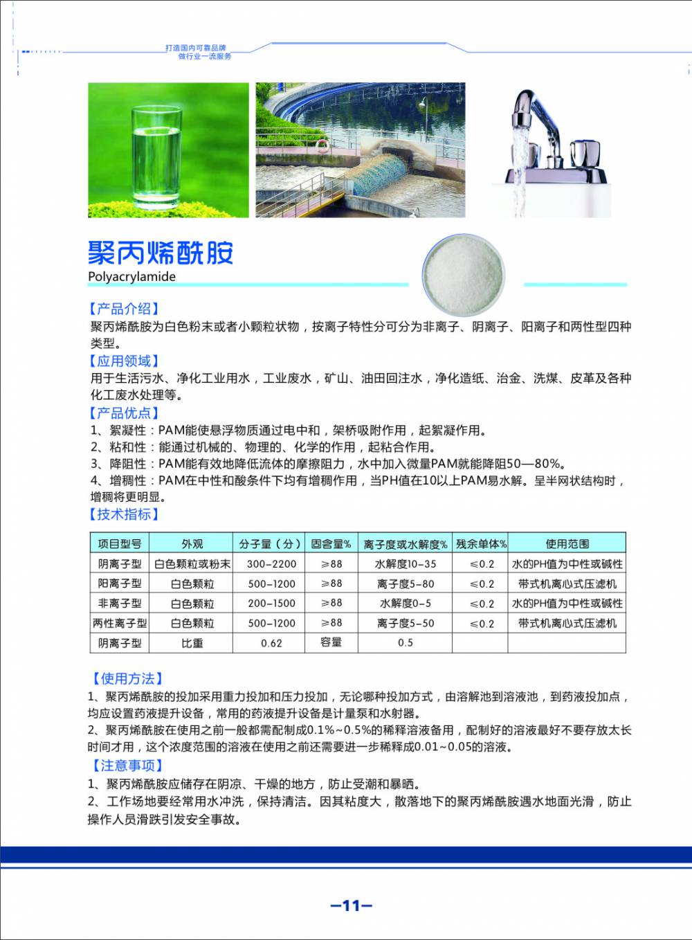 聚丙烯酰胺在污水处理领域作为强化固液分离的手段,可用于强化污水的初次沉淀、浮选处理及活性污泥法之后的二次沉淀,还可用于污水三级处理或深度处理。当用于剩余污泥脱水前的调理时,絮凝剂和助凝剂就变成了污泥条例剂或脱水剂。