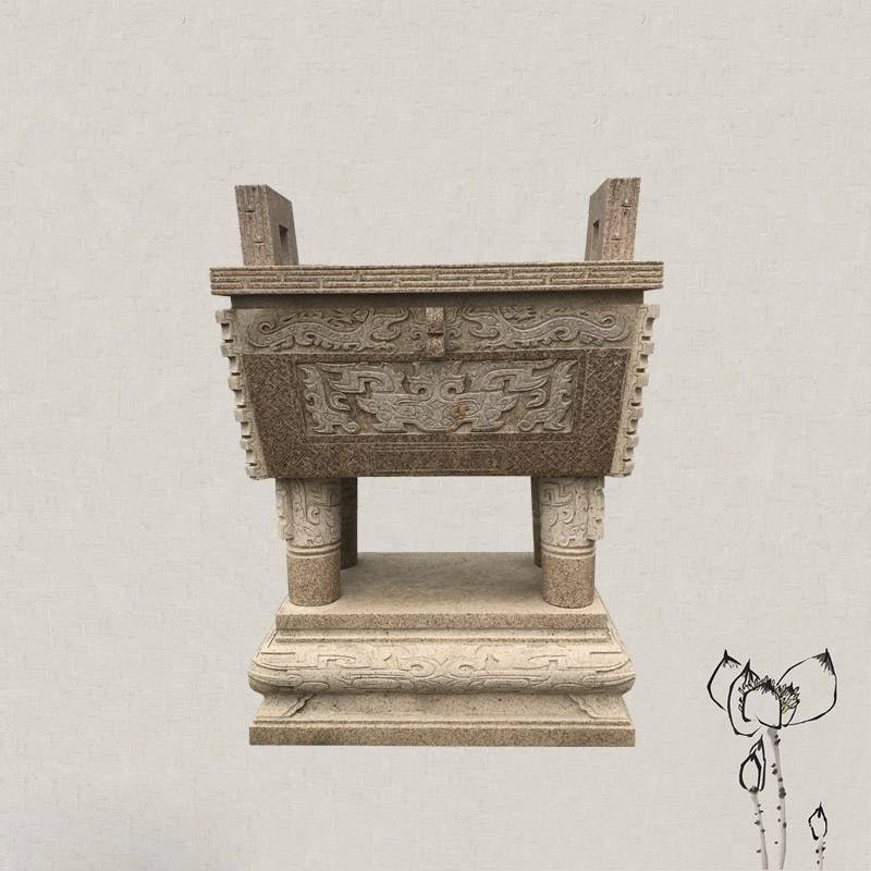 此款方形香炉在造型上区别与其他香炉,是工艺价值较高的四龙柱寺庙香炉,是工艺与文化相融合能够传承的实用香炉,寺庙中常见的香炉形状多为方形或圆形,方形的香炉一般有四足;圆形的香炉,都有三足,一足在前,两足在后放置