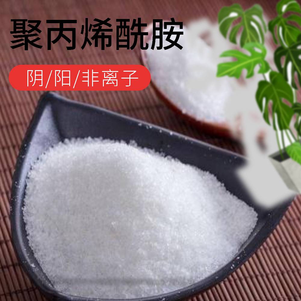 聚丙烯酰胺(PAM)是一种线型高分子聚合物,化学式为(C3H5NO)n。在常温下为坚硬的玻璃态固体,产品有胶液、胶乳和白色粉粒、半透明珠粒和薄片等。热稳定性良好。能以任意比例溶于水,水溶液为均匀透明的液体。长期存放后会因聚合物缓慢的降解而使溶液粘度下降,特别是在贮运条件较差时更为明显
