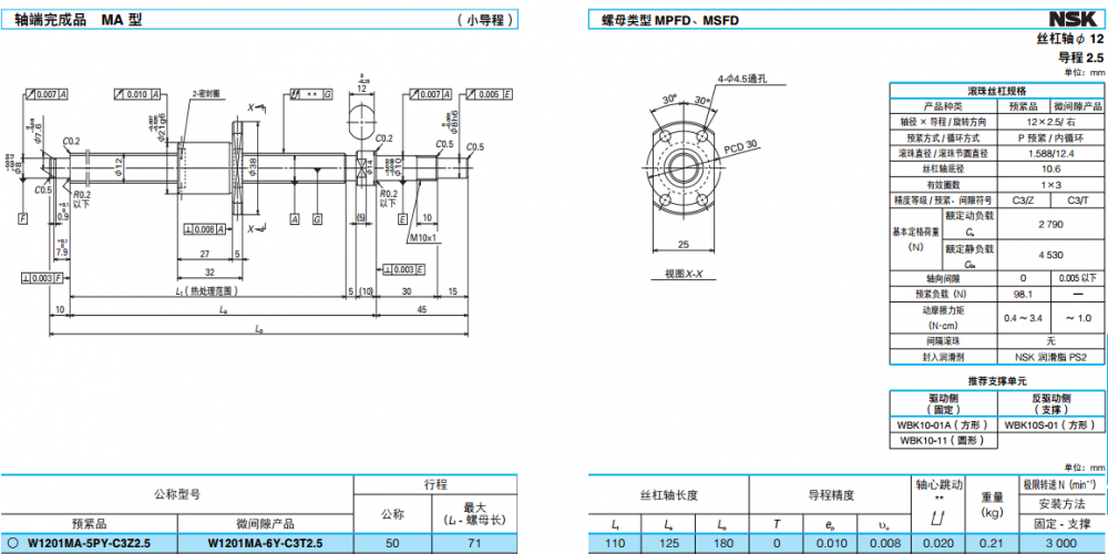 MA轴端成品dn:MA型受NSK丝杠轴和螺母的相对的圆周速度限制