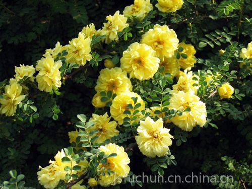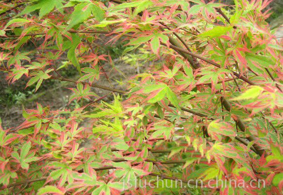具短叶柄,无托叶,花***,伞房花序,萼简钟状,萼片5,花瓣5,圆形较萼片长,雄蕊长于花瓣,着生在花盘和萼片之间,心皮5,离生。瞢荚果5,沿腹缝线开裂,内具数粒细小种子,种子出圆形,种皮膜质。枝叶较松散,呈球状,叶色鲜艳夺目,春季叶色黄红相间,夏季叶色绿,秋季叶紫红色,花玫瑰红,花序较大,10~35朵聚成复伞形花序直径10~20cm。