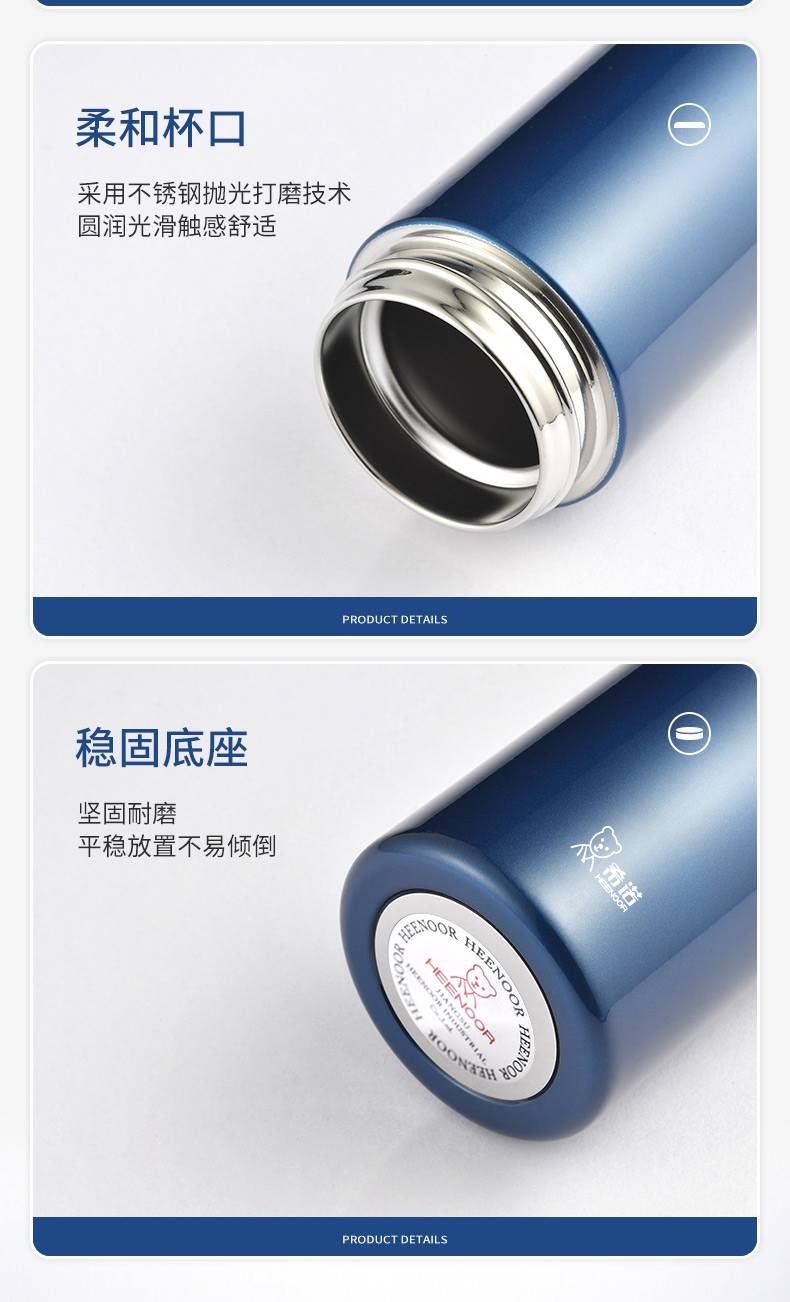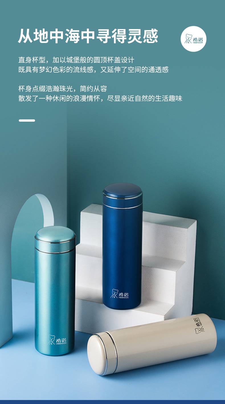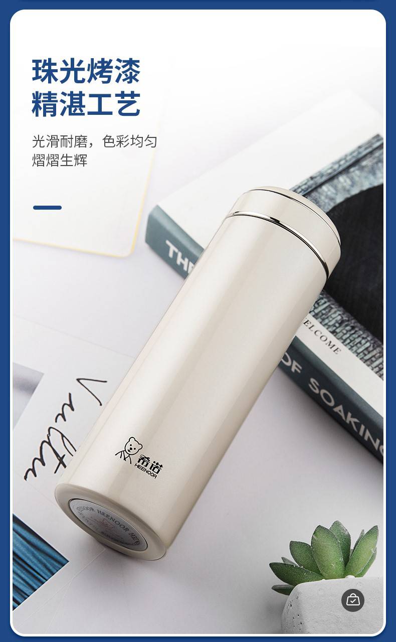 5、希诺保温杯内外胆采用全自动焊接和日本无尾真空技术,防止内胆与外界的热交换,保温时间长,效果佳。