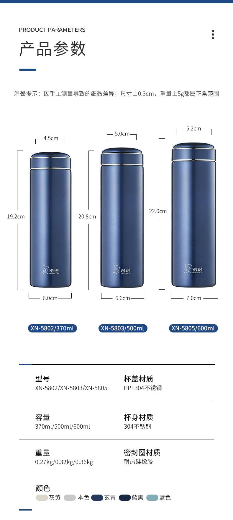 4、希诺保温杯采用全进口SUS304-2B不锈钢和耐温食品级塑料制造。