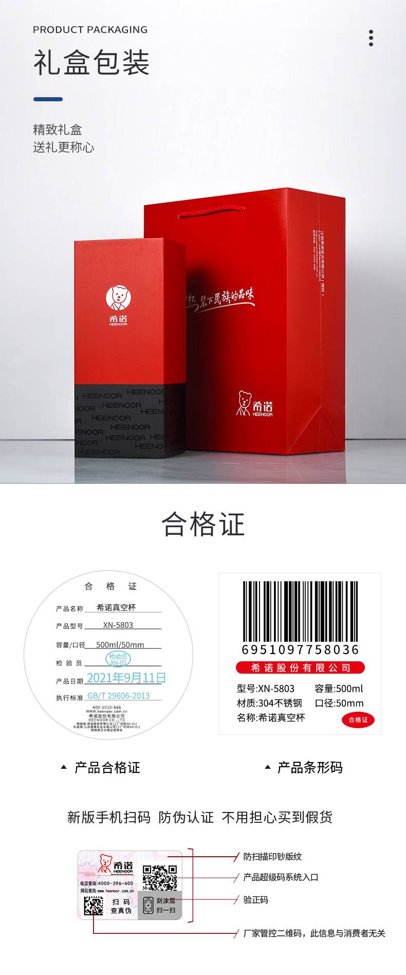 2、希诺保温杯采用***礼品盒包装,适合作为赠送朋友的礼物。