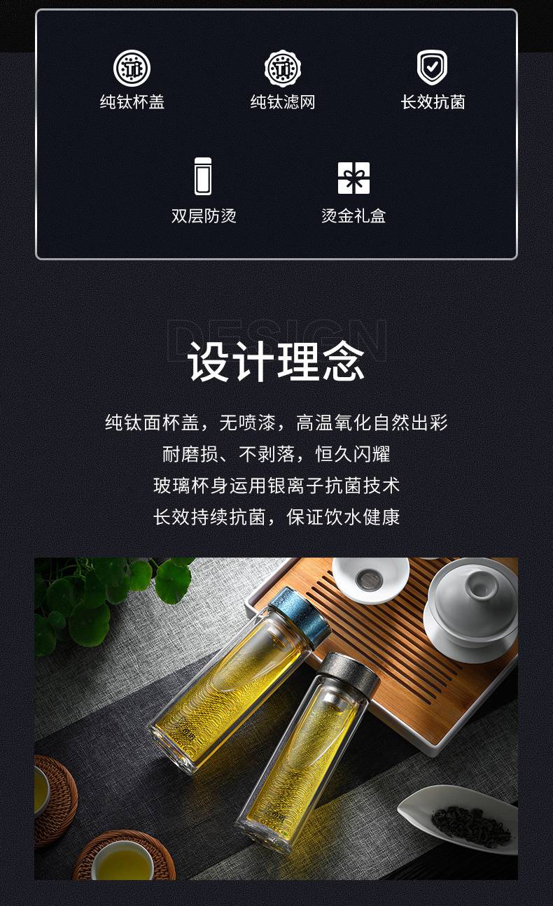 希诺纳米***玻璃杯批发团购T611双层隔热纯钛钛杯水杯