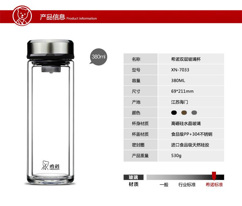 答:希诺玻璃杯的品质远远高于普通的玻璃杯。希诺玻璃杯材料全是选用好的 检测不合格产品直接销毁,所以品质远远高于其他品牌的玻璃杯。