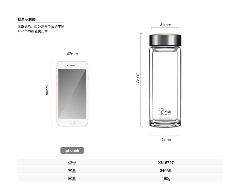 希诺双层玻璃杯批发定制XN-6716员工福利广告礼品纪念礼品定制