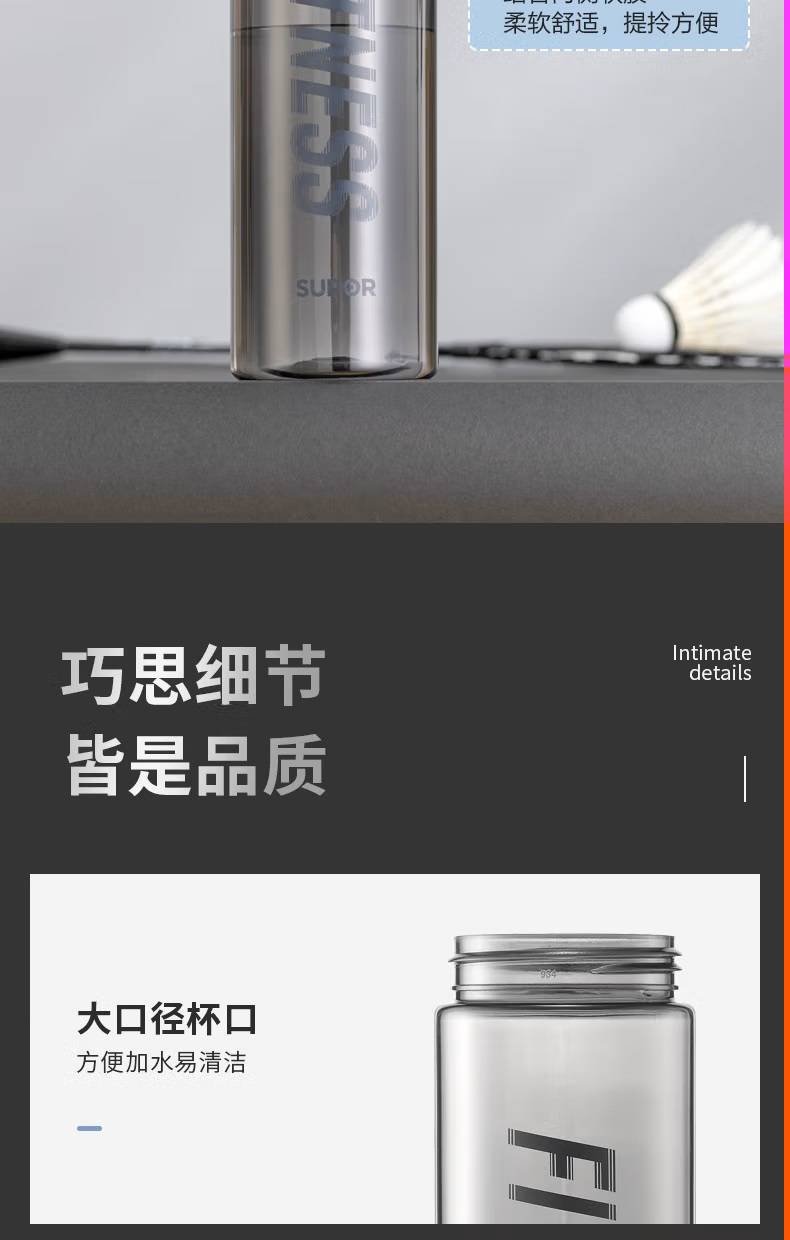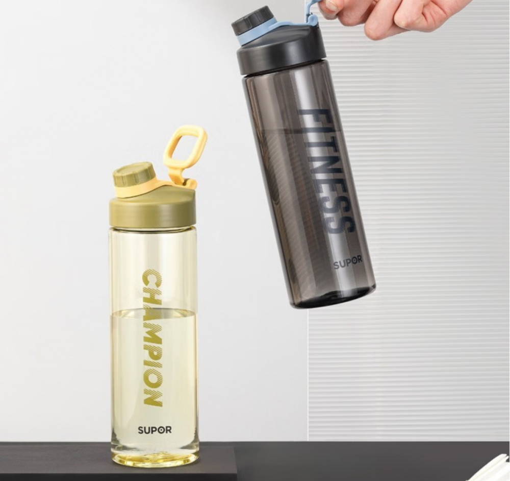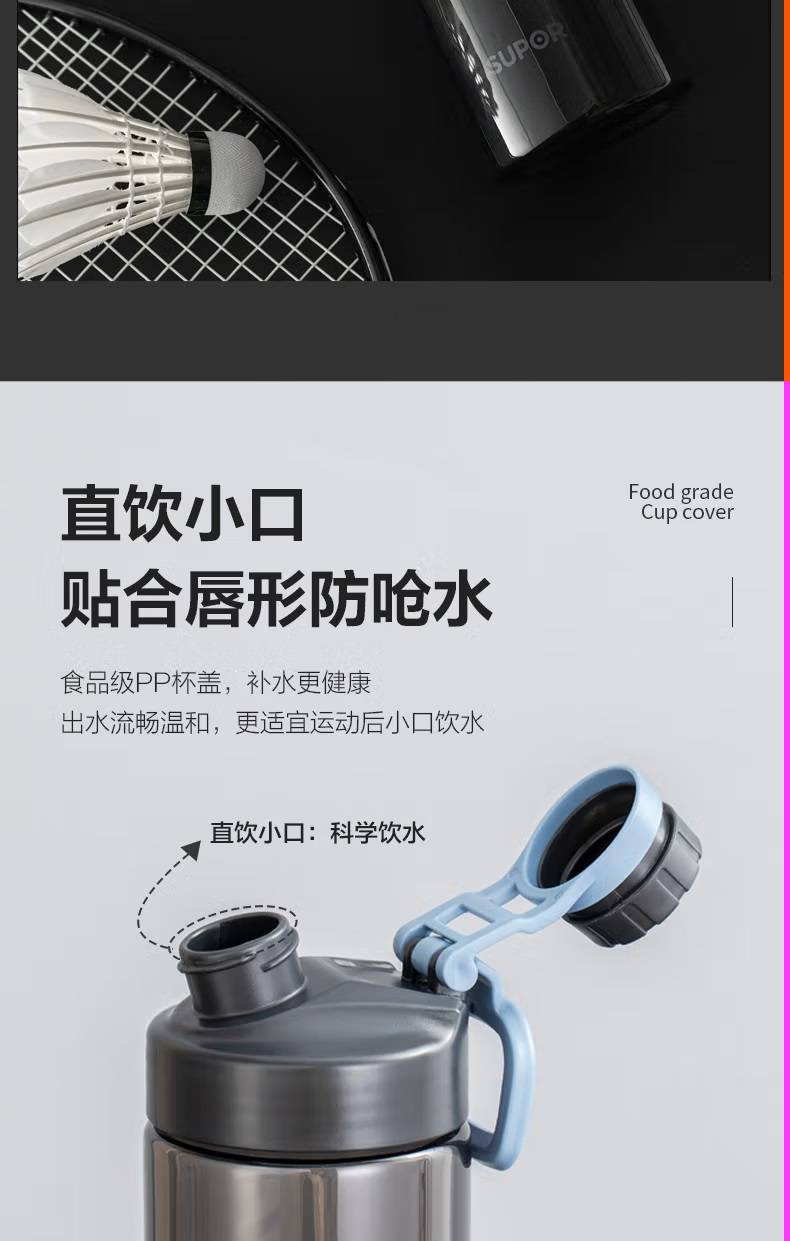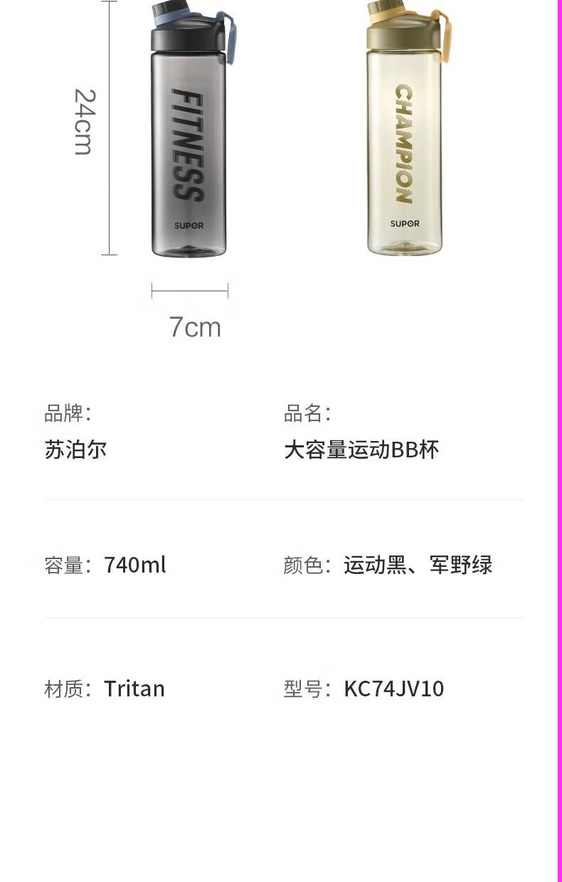 苏泊尔(SUPOR) 运动水杯Tritan男女户外塑料杯学生儿童旋合上盖 大容量运动BB杯 KC74JV10-运动黑 军绿色