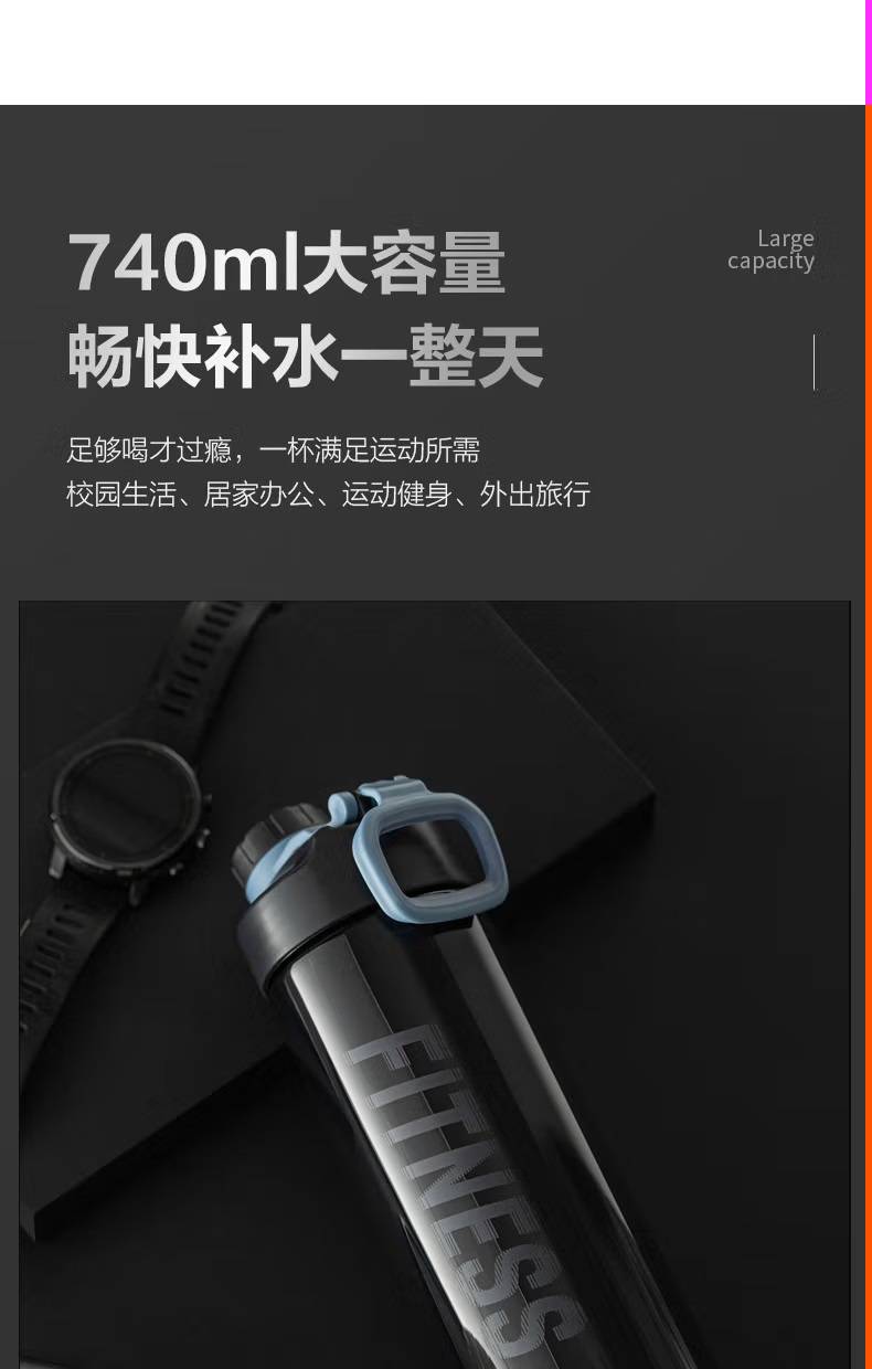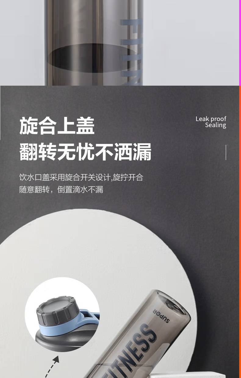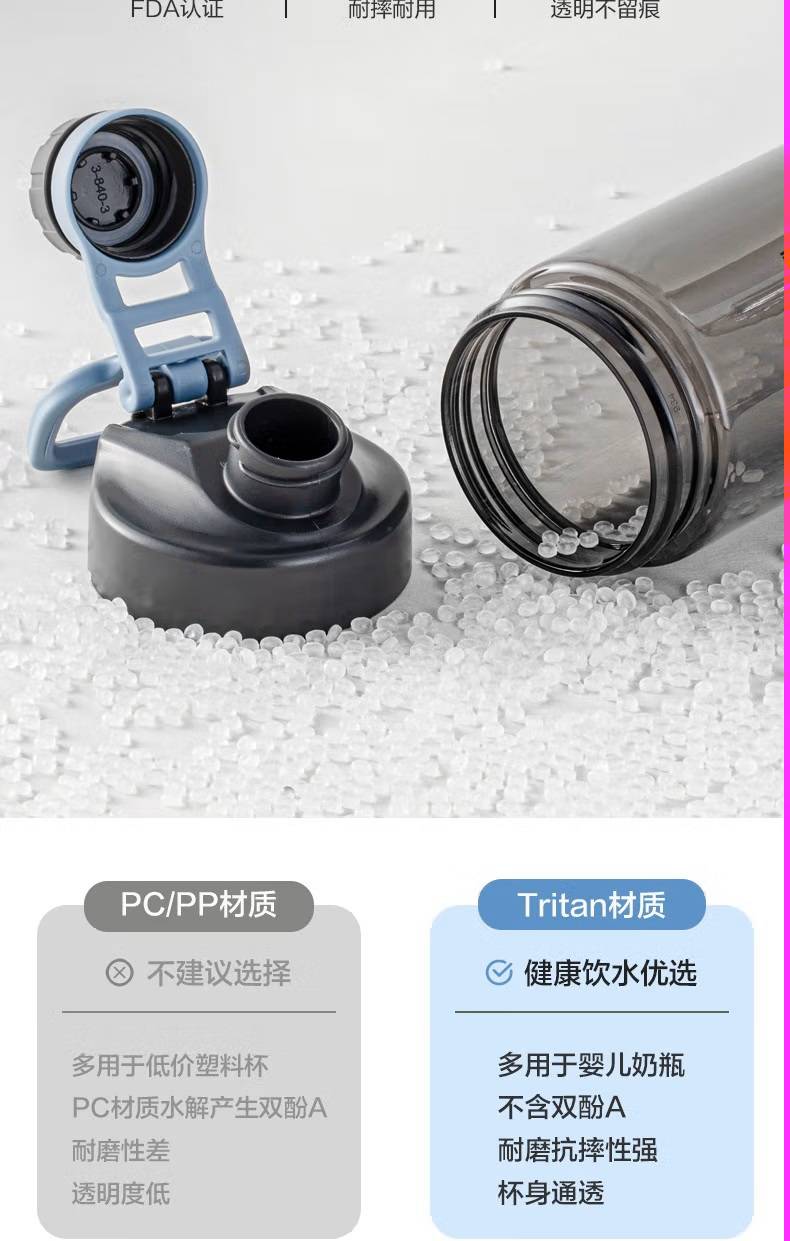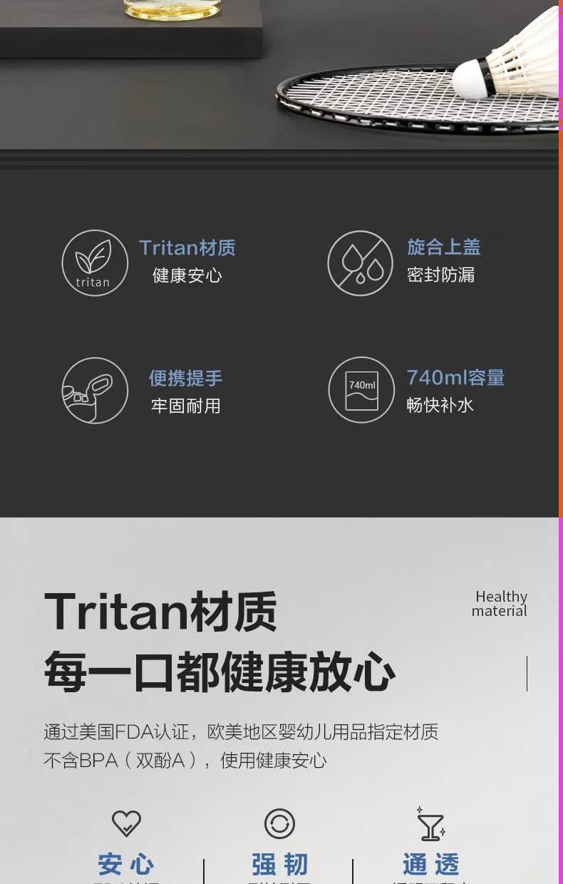 苏泊尔(SUPOR) 运动水杯Tritan男女户外塑料杯学生儿童旋合上盖 大容量运动BB杯 KC74JV10-运动黑 军绿色