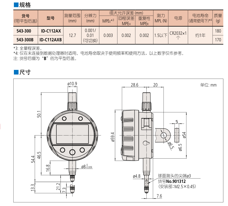 mitutoyo三丰峰值保持型数显千分表543-300B
