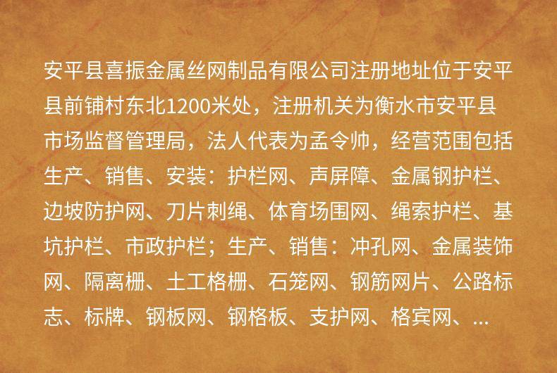 安平县喜振金属丝网制品有限公司电话:+8618632809799传真:联系人:纪岭杰 18632809799