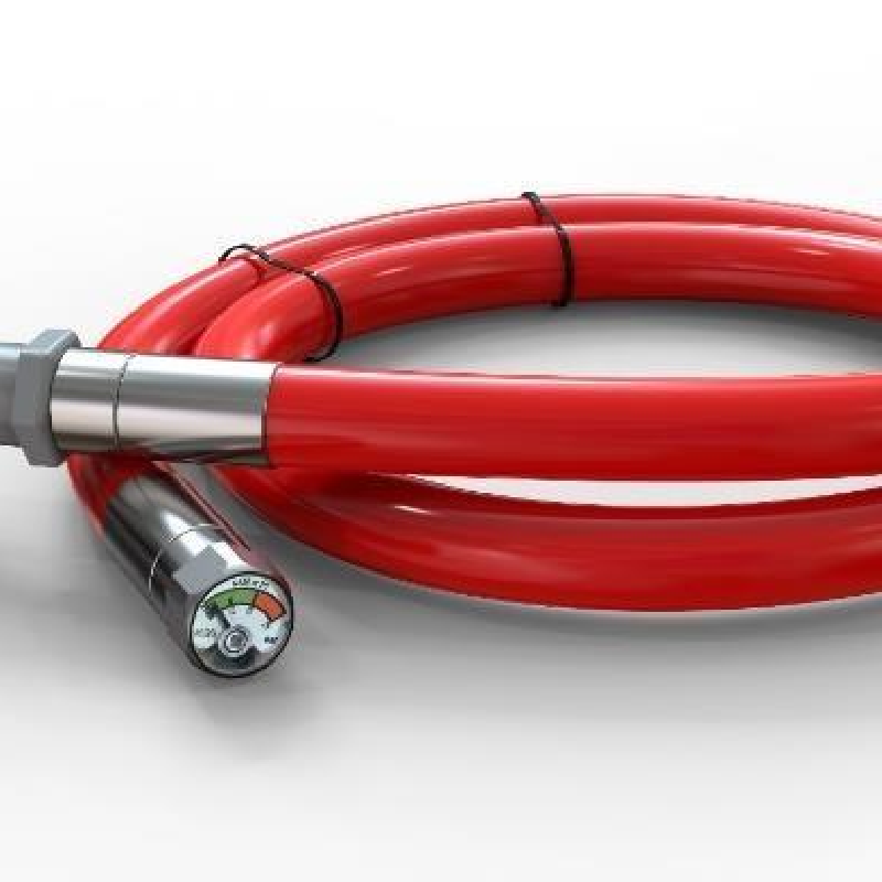 1、 压力反馈装置(可连接报警器或者停机) 2、 特殊分子材质管体(内装灭火剂) 3、 压力表 4、 不锈钢止回阀 5、 包装轧带