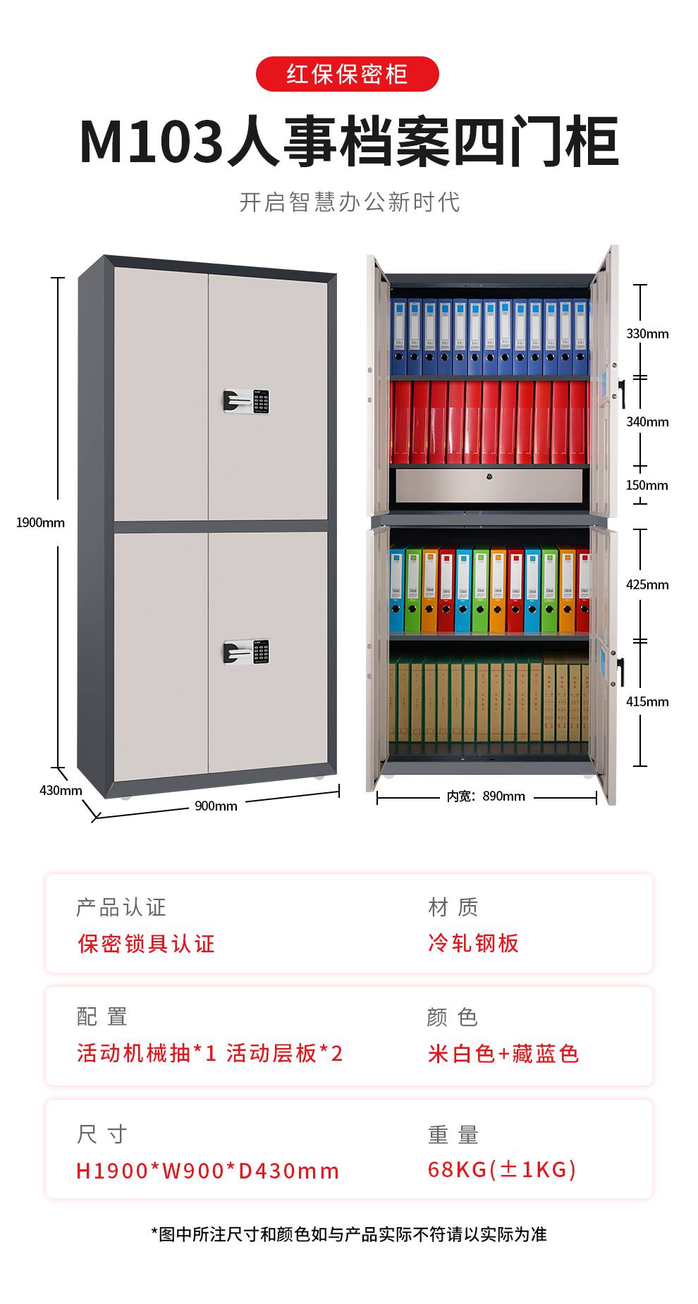 保密柜工厂店红保M103通体双门人事档案柜双人合开电子密码柜
