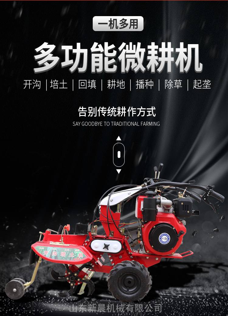小型自走手推式开沟机,适用于大葱、大姜、土豆、萝卜、玉米、花卉、烤烟、草莓等农作物的开沟培土作业。