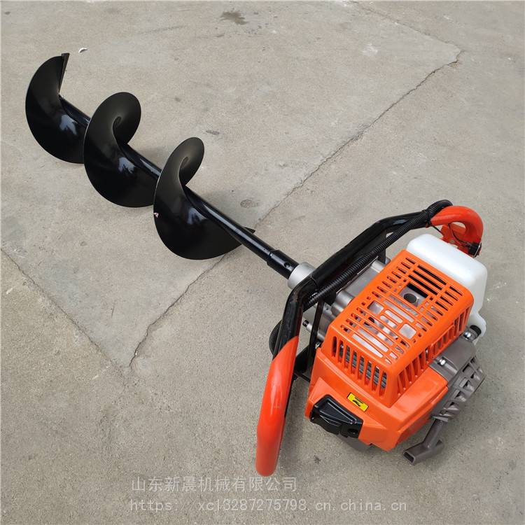 产品名称:地钻、挖坑机发动机形式:风冷单缸二冲程发动机排量:49 CC启动方式:手拉反冲起动燃油比:***与二冲程机油25:1净重:13kg植树挖坑机使用效率:使用挖坑机的效率是人工的数十倍,操作每小时不低于80个坑,按一天工作8小时计算,一天可以挖680个坑以上,是人工的30多倍,本厂地钻型号全。操作规程(1)检查挖坑机油箱是否有油,起动挖坑机发动机(2)使钻头对准待挖坑的标记中心,按下工作开关,发动机带动钻头旋转入土;钻头切去中心部分土壤,进而钻头叶片下端的刀片切削土壤,切下的土壤在离心力作用下被抛向穴壁并在磨擦力作用下沿着螺旋叶片向上升到地面并被抛撒到穴坑的周围;(3)挖到预定深度后,缓慢提起挖坑机,在挖坑机钻头离开地面后,松开工作开关,完成挖坑过程。
