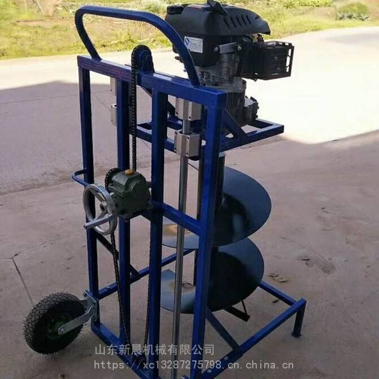 产品名称:地钻、挖坑机发动机形式:风冷单缸二冲程发动机排量:49 CC启动方式:手拉反冲起动燃油比:***与二冲程机油25:1净重:13kg植树挖坑机使用效率:使用挖坑机的效率是人工的数十倍,操作每小时不低于80个坑,按一天工作8小时计算,一天可以挖680个坑以上,是人工的30多倍,本厂地钻型号全。操作规程(1)检查挖坑机油箱是否有油,起动挖坑机发动机(2)使钻头对准待挖坑的标记中心,按下工作开关,发动机带动钻头旋转入土;钻头切去中心部分土壤,进而钻头叶片下端的刀片切削土壤,切下的土壤在离心力作用下被抛向穴壁并在磨擦力作用下沿着螺旋叶片向上升到地面并被抛撒到穴坑的周围;(3)挖到预定深度后,缓慢提起挖坑机,在挖坑机钻头离开地面后,松开工作开关,完成挖坑过程