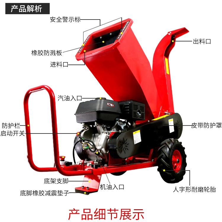 2.因其移动方便,不使用电力,也可用于公园、院校、小区、采伐区树枝、树叶的切片和粉碎。