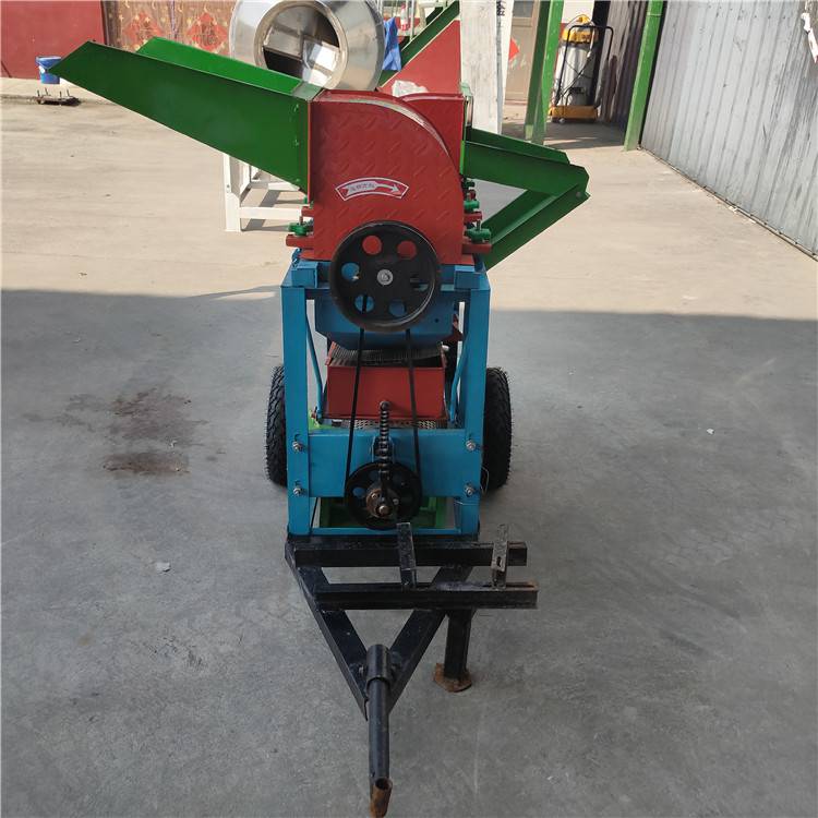(3)为提高籽粒的清洁度,脱粒机设计 二次清选风机,并设有二次清选风机,麦糠、杂物都可通过风机排出机器外,麦粒落入振动筛底滑板后,从出粮口流出,人工装袋。并有两种机型:一种为电机作为动力,另一种是以柴油机***机为动力,因此用户在购买脱粒机时 要根据自己的动力配备情况。