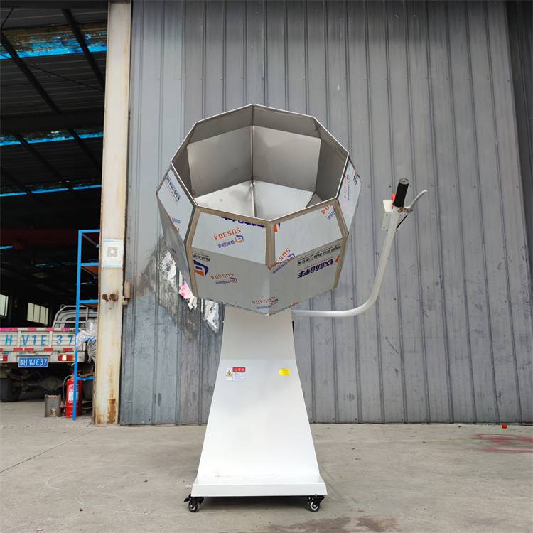 根据油炸食品的形状特点设计制造的,有圆盘型、八角形两种形式,是油炸食品调味、拌料的专用设备.八角拌料机结构简单实用,主要用于食品的后期调味粉的搅拌或原料的裹粉包衣以及掺和专用