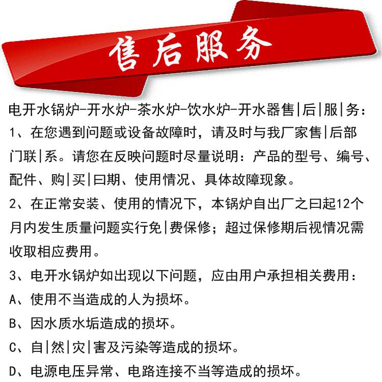 不锈钢内胆电开水炉的加热管全部采用水电分离式的陶瓷电加热管,该加热管耐热负荷高,不怕干烧,不漏电,所以使用按全。