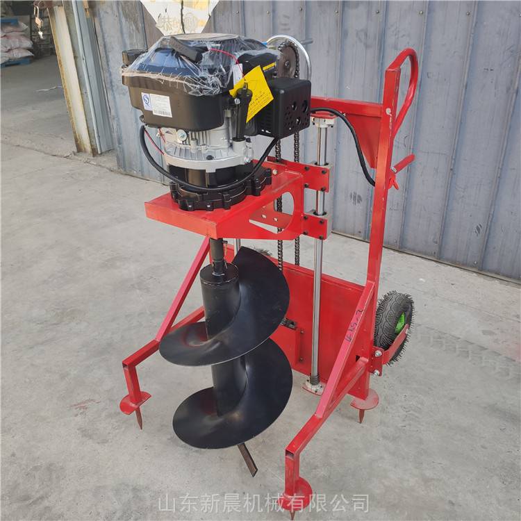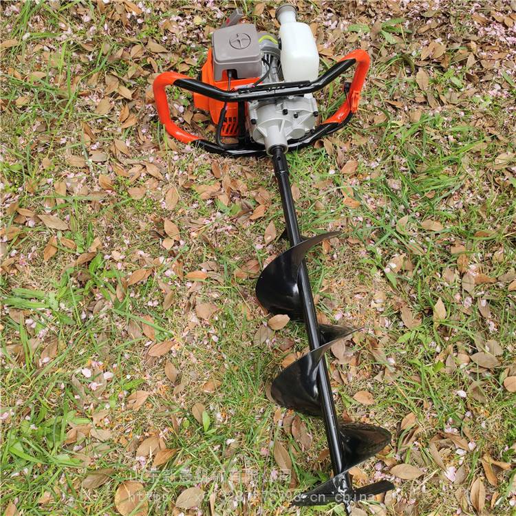 产品名称:地钻、挖坑机发动机形式:风冷单缸二冲程发动机排量:49 CC启动方式:手拉反冲起动燃油比:***与二冲程机油25:1净重:13kg植树挖坑机使用效率:使用挖坑机的效率是人工的数十倍,操作每小时不低于80个坑,按一天工作8小时计算,一天可以挖680个坑以上,是人工的30多倍,本厂地钻型号全。操作规程(1)检查挖坑机油箱是否有油,起动挖坑机发动机(2)使钻头对准待挖坑的标记中心,按下工作开关,发动机带动钻头旋转入土;钻头切去中心部分土壤,进而钻头叶片下端的刀片切削土壤,切下的土壤在离心力作用下被抛向穴壁并在磨擦力作用下沿着螺旋叶片向上升到地面并被抛撒到穴坑的周围;(3)挖到预定深度后,缓慢提起挖坑机,在挖坑机钻头离开地面后,松开工作开关,完成挖坑过程。