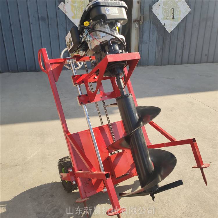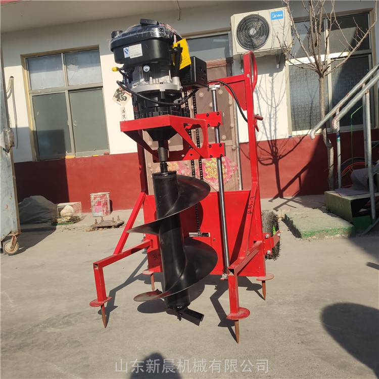 螺旋式挖坑机手推独轮带架子地钻机新晨8马力***打坑机