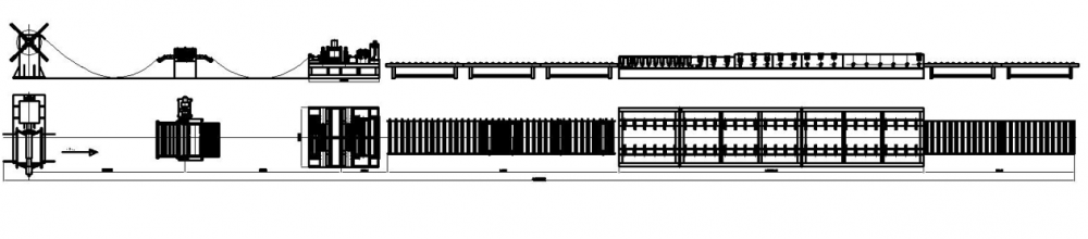 上料→开卷→校平送料→冲托盘孔、冲七字扣孔→定尺液压切断→传送滚道送料→冲连接孔、七子扣孔→传送滚道送料→冷弯成型→出料打包。