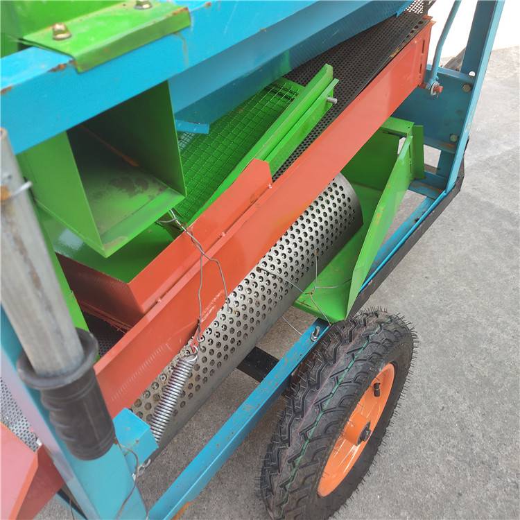 (1)该机主要有喂入台、机架、凹板筛、滚筒、机盖、主风机、吹风机、电动机 或(柴油机)、振动筛、牵引导向装置组成。