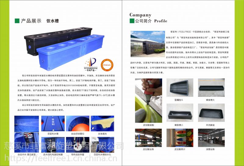 二,产品尺寸为3500*600*600MM,是按照实际牛饮水位的宽窄进行设计,可同时容纳六头牛饮水。箱体采用滚塑一次性成型,盖子为了便于安装和使用,分为3截。中间盖板为进水和加热装置的保护盖,两侧盖板在不需要保温的情况下随时可以取下。浮球也是滚塑成型,并配有专用支撑架,每次牛顶开浮球饮水后,都能很好的复位,保证饮水槽的保温。