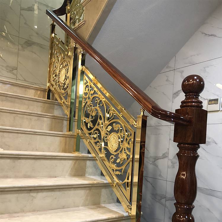 新时代金属镀金室内家装楼梯栏杆铜板雕花护栏扶手ys-160
