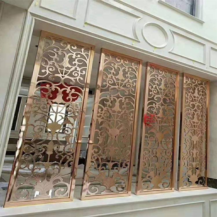 苏州古典现代端庄款钛金铜艺浮雕屏风花格玄关厂家YX-628