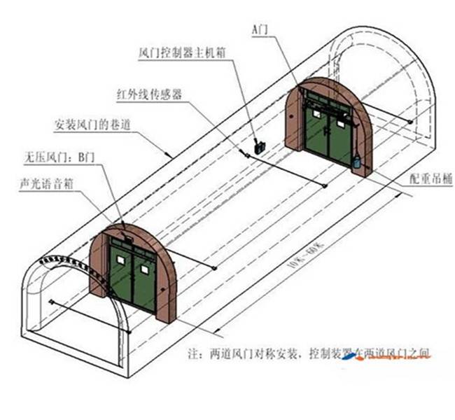 矿用风门电控装置是一套通过感应传送信号让无压风门自动开门的控制装置,它是由红外传感器、气缸,气控箱,主控箱PLC控制板、电磁阀等组件组成的,它的各部件精密可靠相互协助,提高了平衡风门的智能化水平。