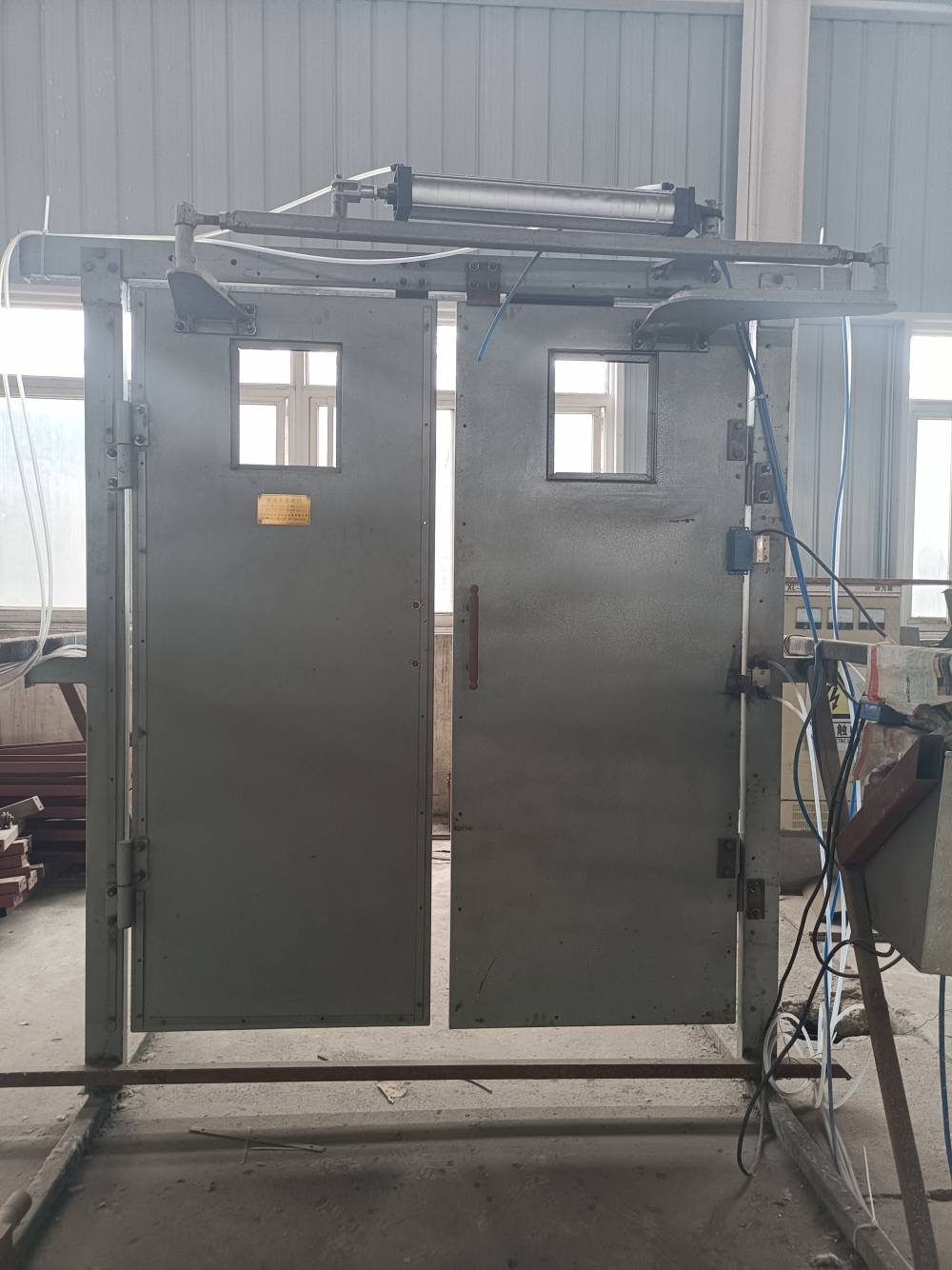 因为两个木门都是双门,都是门带和木板做的,工人进出运料时需要同时打开左右两扇门。当风门通过时,由于风压大,通常需要两个人来完成,非常费力,进出非常不方便,木门加工繁琐,安装拆卸麻烦,不符合化要求,不能回收,浪费*。