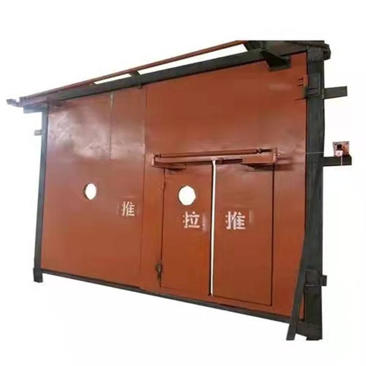 矿用抗冲击波门,井下抗冲击波门分抗冲击波活门和抗冲击波密闭门安装在井下库发放及行人一侧的出口,在其发放处的外侧,以防止库内或发放处冲击波及后产生的火焰及浓烟、有体向外扩散。密闭门设置在库房回风侧出口的一端,其作用同防护活门一样,这两种们通常是关闭的。
