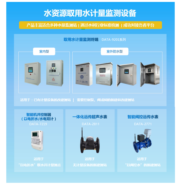 多款水资源取用水计量监测设备,满足各类项目和测站需求 |
